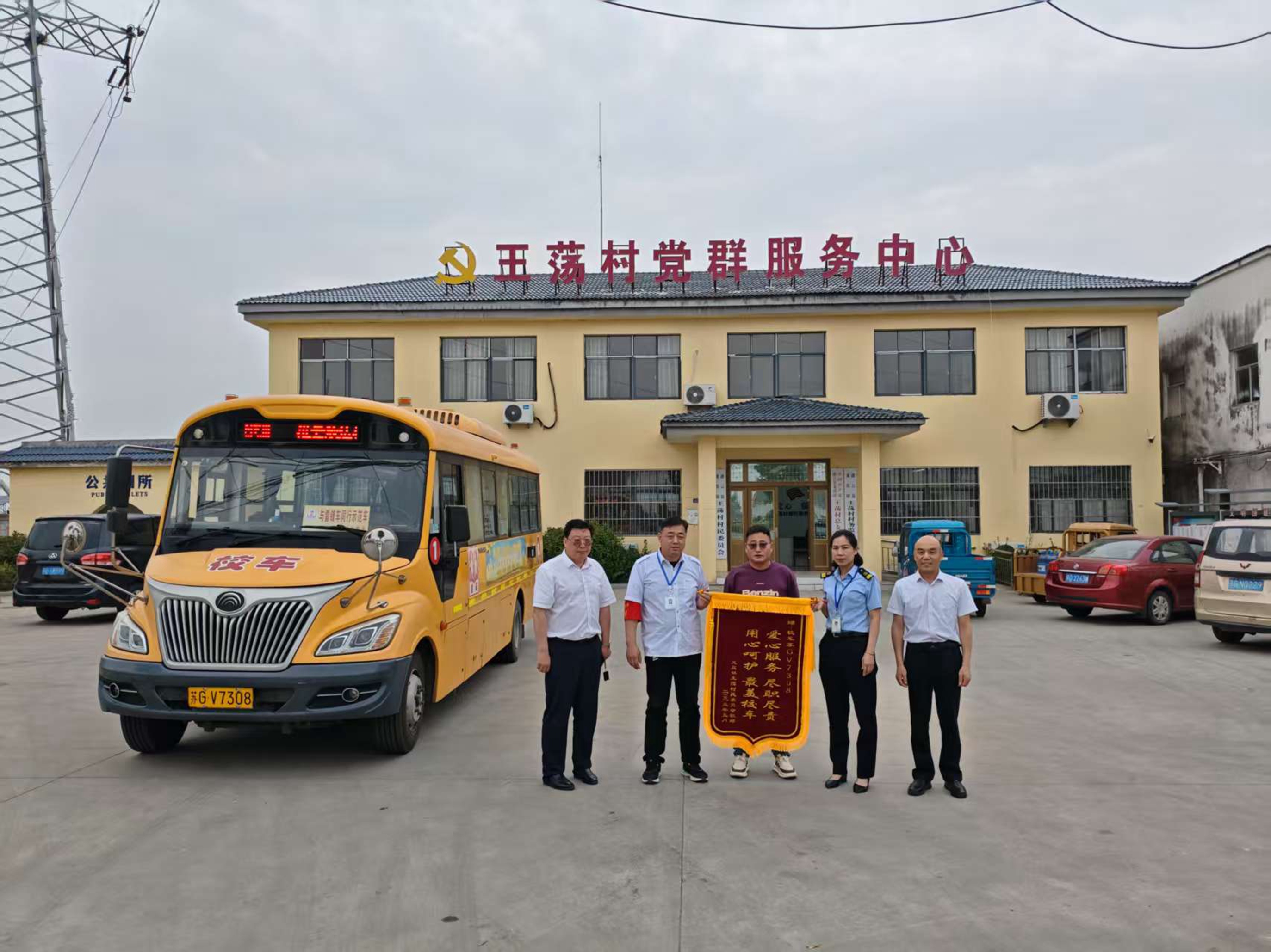 “谢谢你们的优质服务,对孩子的细心照顾,一直以来接送学生安全无事故,把孩子安全送到我们的手上。锦旗虽小,却代表着我们的心意。”王荡村党群服务中心向苏GV7308校车驾乘团队致以真诚的感谢。