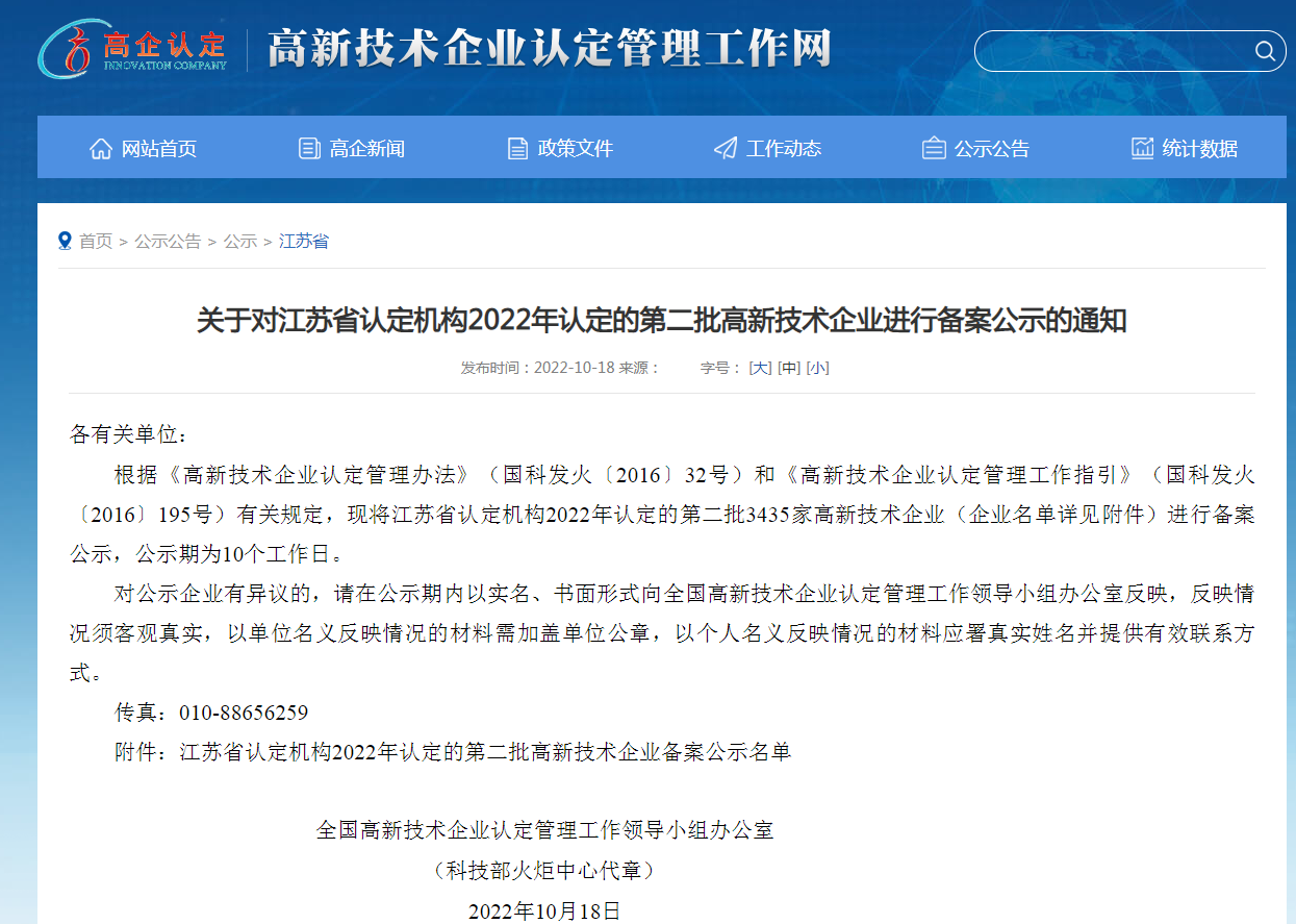 2022年10月17日,全国高新技术企业认定管理工作领导小组办公室发布了《江苏省认定机构2022年认定的第二批高新技术企业备案公示名单》,江苏明茂新能源科技有限公司(以下简称“明茂公司”)榜上有名,明茂公司成功通过高新技术企业认定。