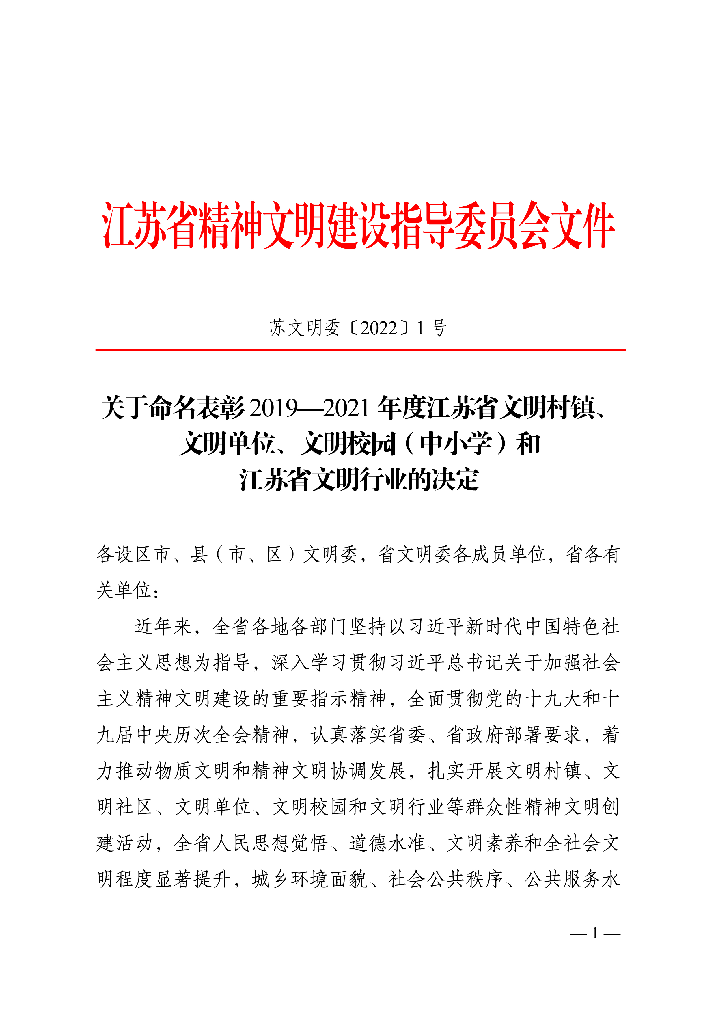 近日,全省宣传部长会议表彰了2019-2021年度江苏省文明村镇、文明单位、文明校园和江苏省文明行业。交通控股安博app最新版下载,安博(中国)(本部)及权属5家单位荣获“2019-2021年度江苏省文明单位”称号。