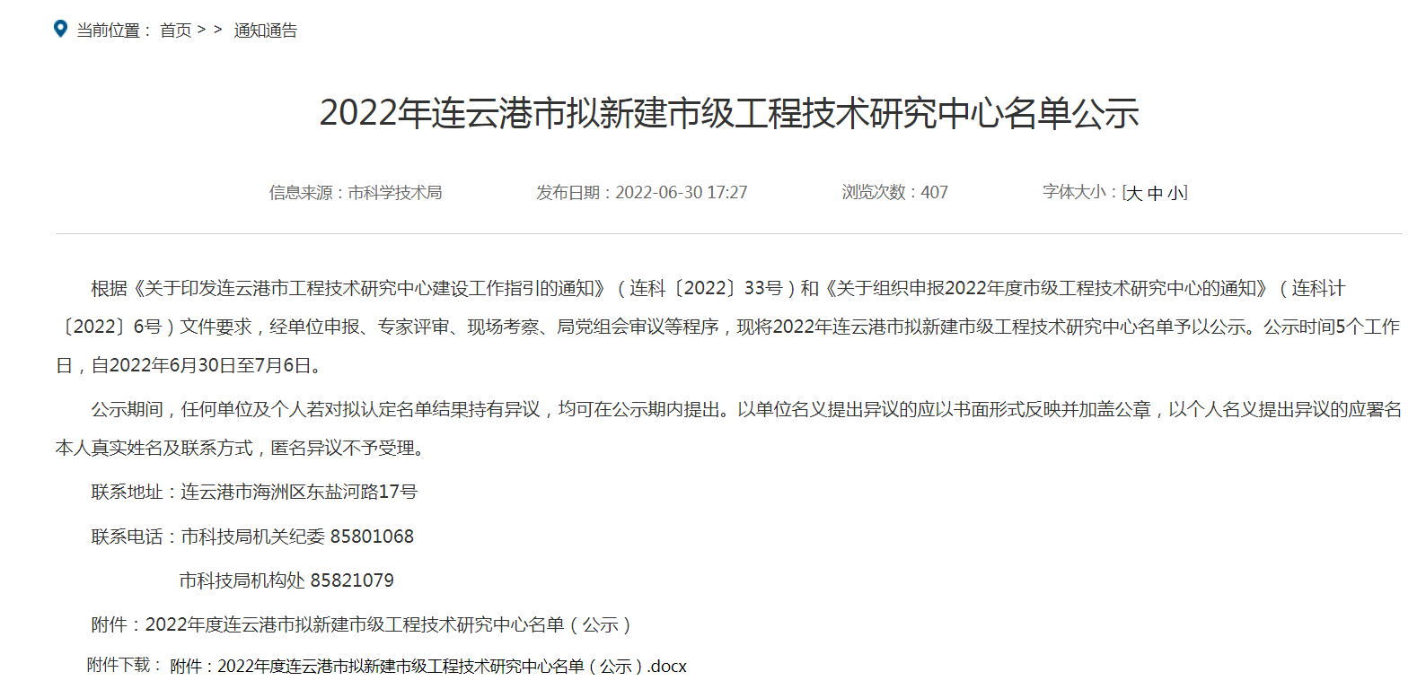明茂港嘉公司组建的“连云港市港口信息化管理平台工程技术研究中心”已通过连云港市科技局专家评审及现场审核,获批“2022年市级企业工程技术研究中心”。