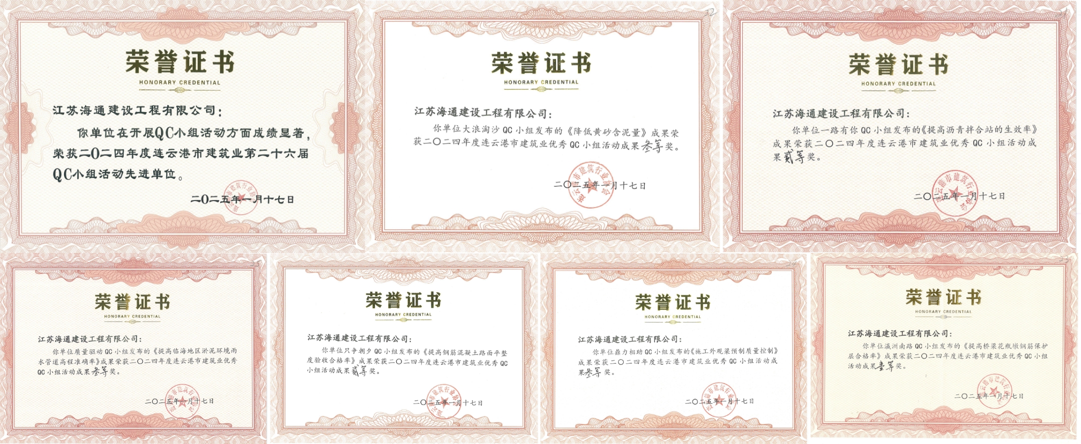 此次获奖的6项成果分别为《提高桥梁花瓶墩钢筋保护层合格率》《提高钢筋混凝土路面平整度验收合格率》《提高沥青拌合站的生产效率》《箱梁预制施工外观质量控制》《降低黄砂含泥量》《提高临海地区淤泥环境雨水管道高程准确率》,均是围绕施工一线、生产一线存在的质量技术管理问题开展的质量技术攻关活动,QC质量管理活动已成为基础性的常规工作。通过QC质量管理活动的开展,实现全员质量意识的提升,达到提高施工效率、降低生产成本的目的,为公司高质量发展增势赋能。