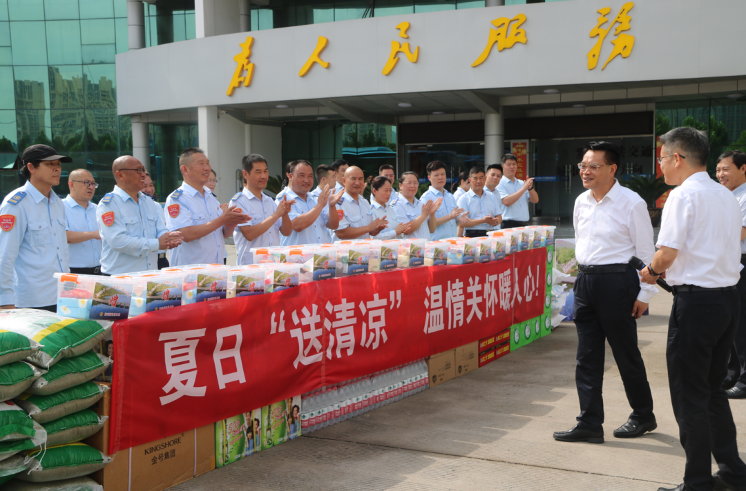 7月31日,市人大常委会副主任、市总工会主席王家全一行赴安博app最新版下载,安博(中国)新华公交总站开展“夏日送清凉”活动,为一线工作人员送来了防暑降温用品。交通控股安博app最新版下载,安博(中国)党委书记、董事长仲伟涛,党委副书记、工会主席陈金师陪同慰问。