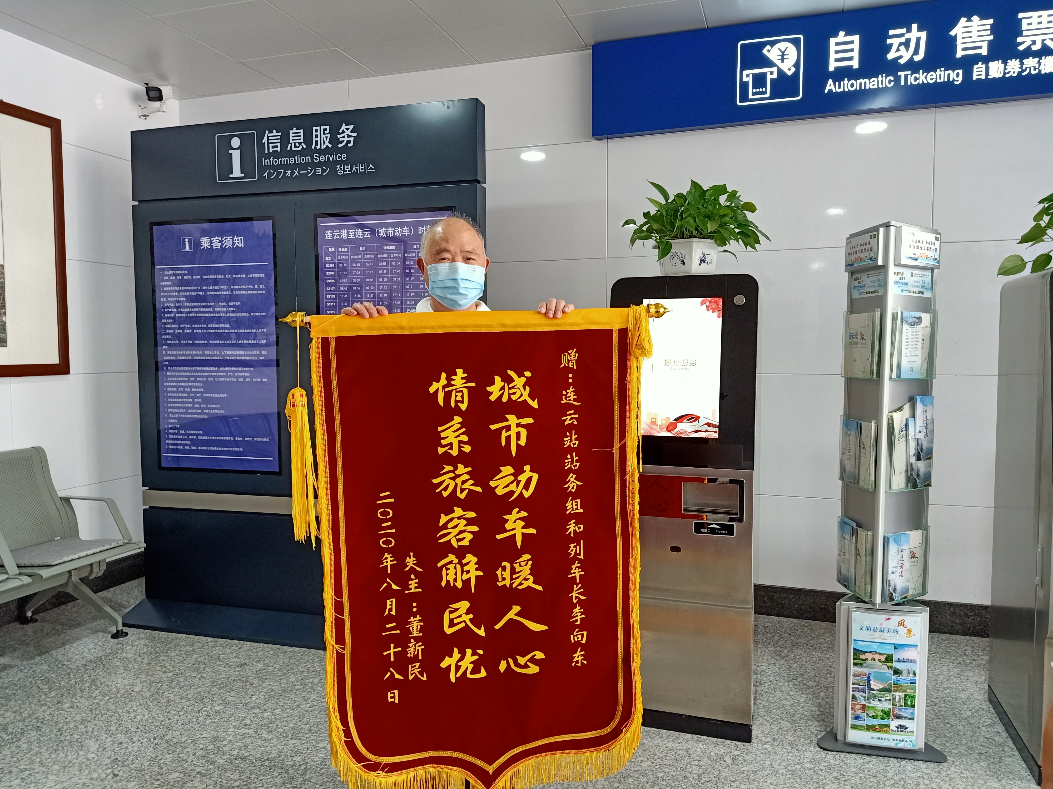 大爷回去一直惦念着此事,想用最淳朴真诚的方式表达他的感谢。隔了几天后,送来了锦旗及感谢信。红艳艳的锦旗是对城市动车工作人员的肯定。城市动车工作人员能做到急乘客所急,忧乘客所忧,尽最大的努力去帮助他们。