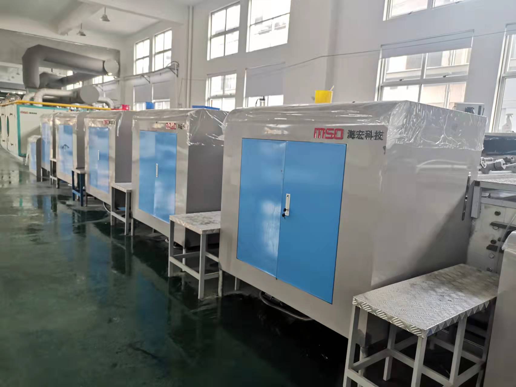 投产的生产设备MSO高速凹版印花机是海宏科技自主研发的印花设备,采用公司核心高端数控系统,解决了高速精准套印,快速换版、套间叠色等一系列核心技术问题。设备的8大技术创新,解决了纺织印染行业的高污染、高能耗等环保问题,真正实现零污染,零排放,绿色印花。