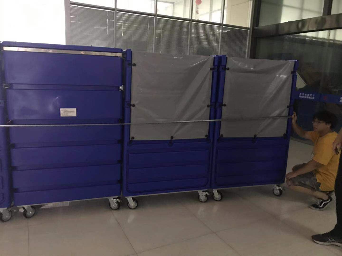 连德物流公司购进12辆塑料布草外送笼车
