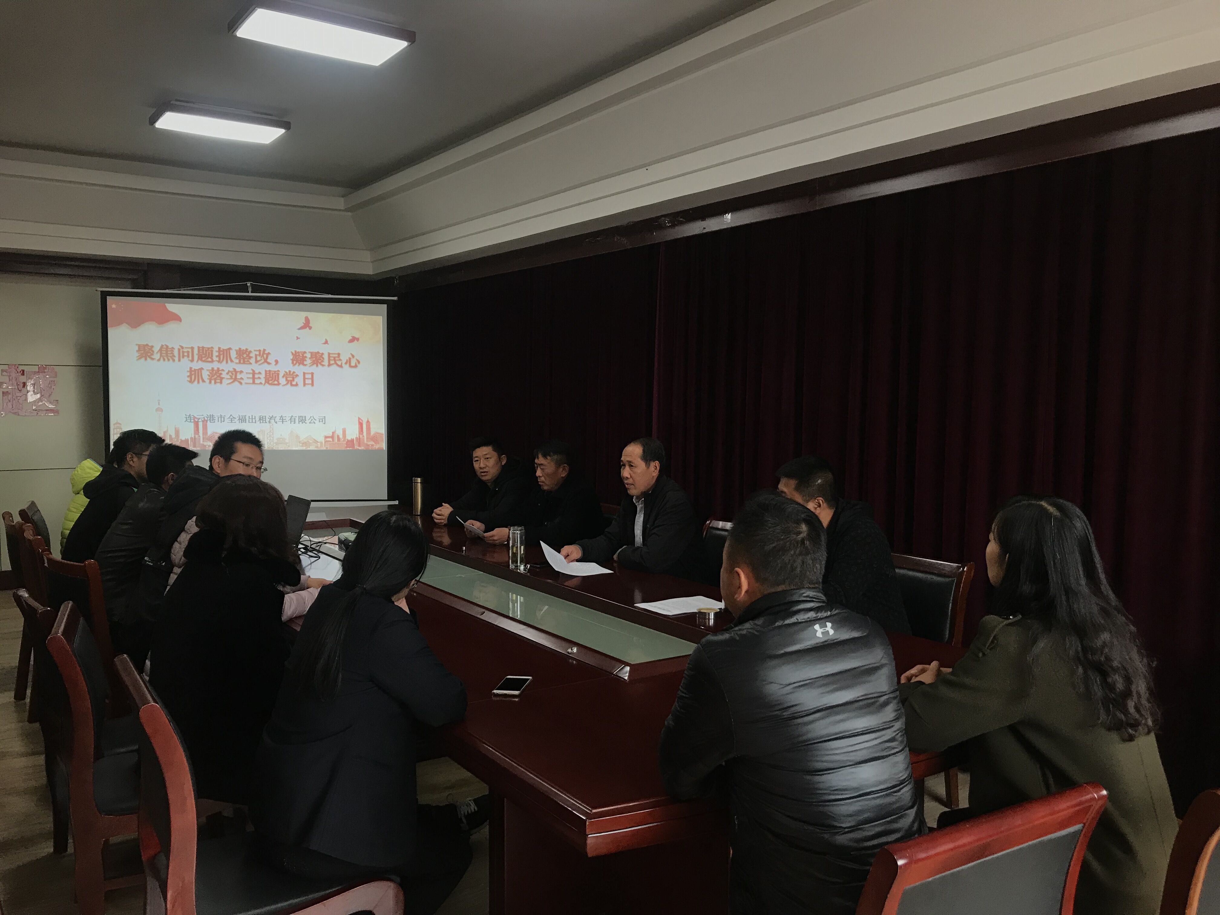 根据市委“不忘初心、牢记使命”主题教育领导小组办公室及汽服党委统一部署,11月25日上午,全福公司党支部在公司三楼会议室开展不忘初心、牢记使命“聚焦问题抓整改,凝聚民心抓落实”主题党日活动。