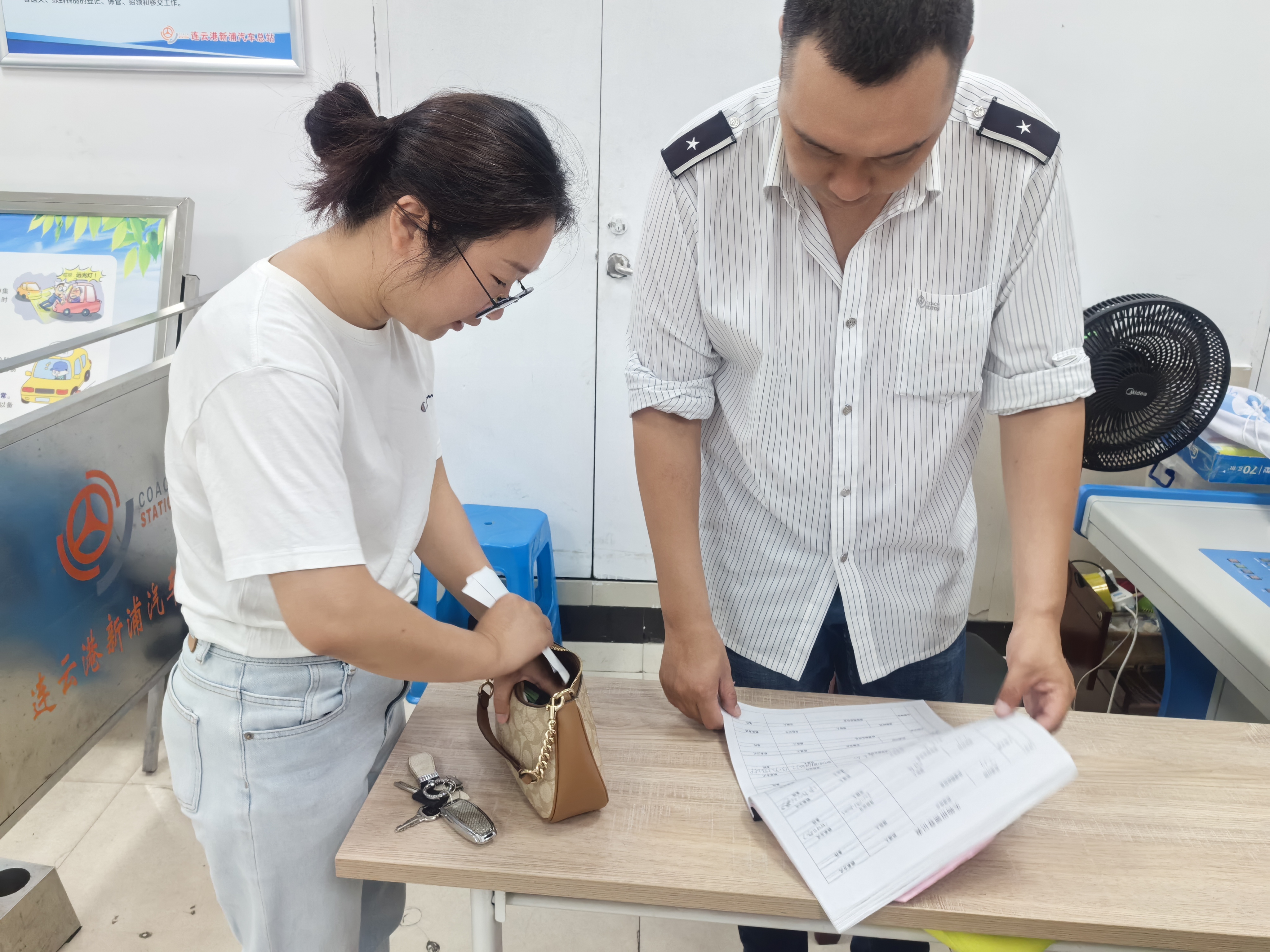 当日下午,王建国驾驶机场巴士从花果山机场发往市区,抵达新浦汽车总站后,按照惯例对车厢进行清洁。在整理后排座位时,他发现一个手提包遗落在座位上,此时旅客已全部下车离开。王建国第一时间检查物品,发现包内有现金若干、个人身份证件和银行卡等重要个人物品,他立即将手提包送至总站“雷锋车”组服务台,交由工作人员登记保管。