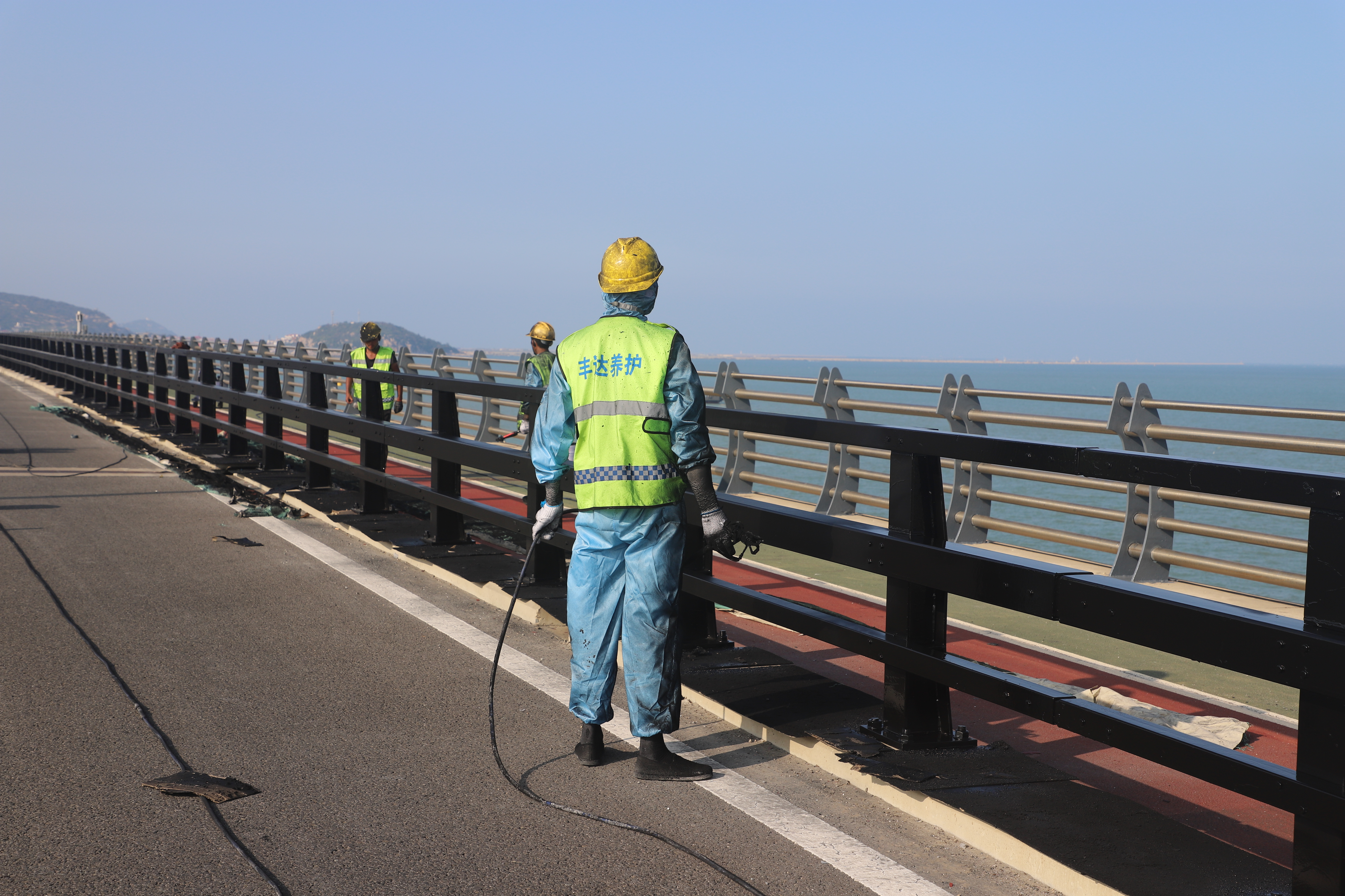 连云港海滨大道是一条彰显港城山海相拥、港产城相融的滨海旅游观光大道,该大道沿着连云港东海岸线贯穿南北,将连云港港口、产业、城区有机联系在一起。该项目主要为跨海大桥防撞护栏进行除锈出新,共完成油漆作业约36000m2、不锈钢钢管维修增设48米、横缝焊接打磨102米、端头封堵30个、南桥头灌缝60米、原螺丝超长切割处理13500根。