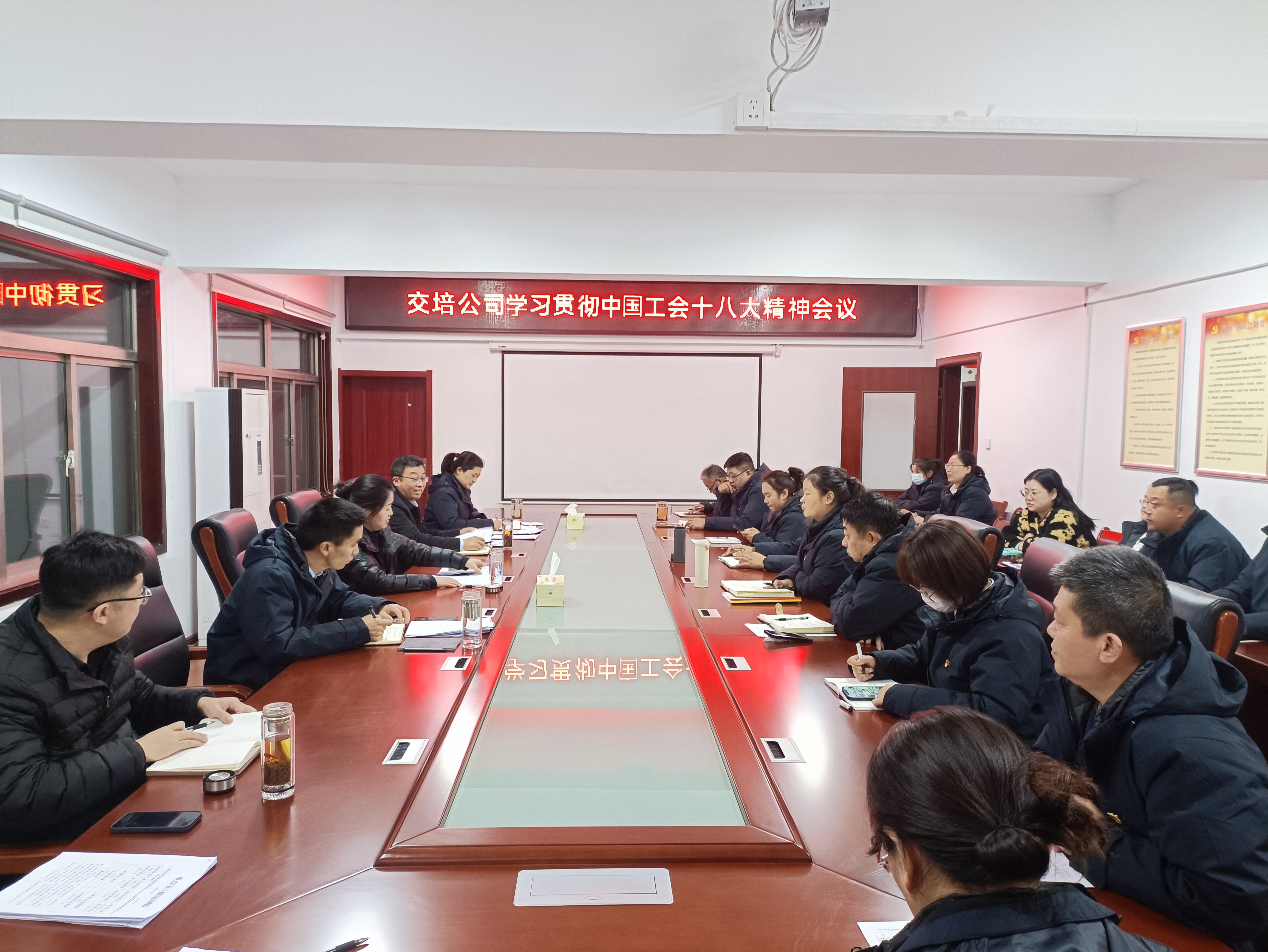 11月29日,交培公司召开学习贯彻中国工会第十八次全国代表大会精神会议,会议由纪委书记、工会主席陈志文主持,公司中层干部和职工代表参加。