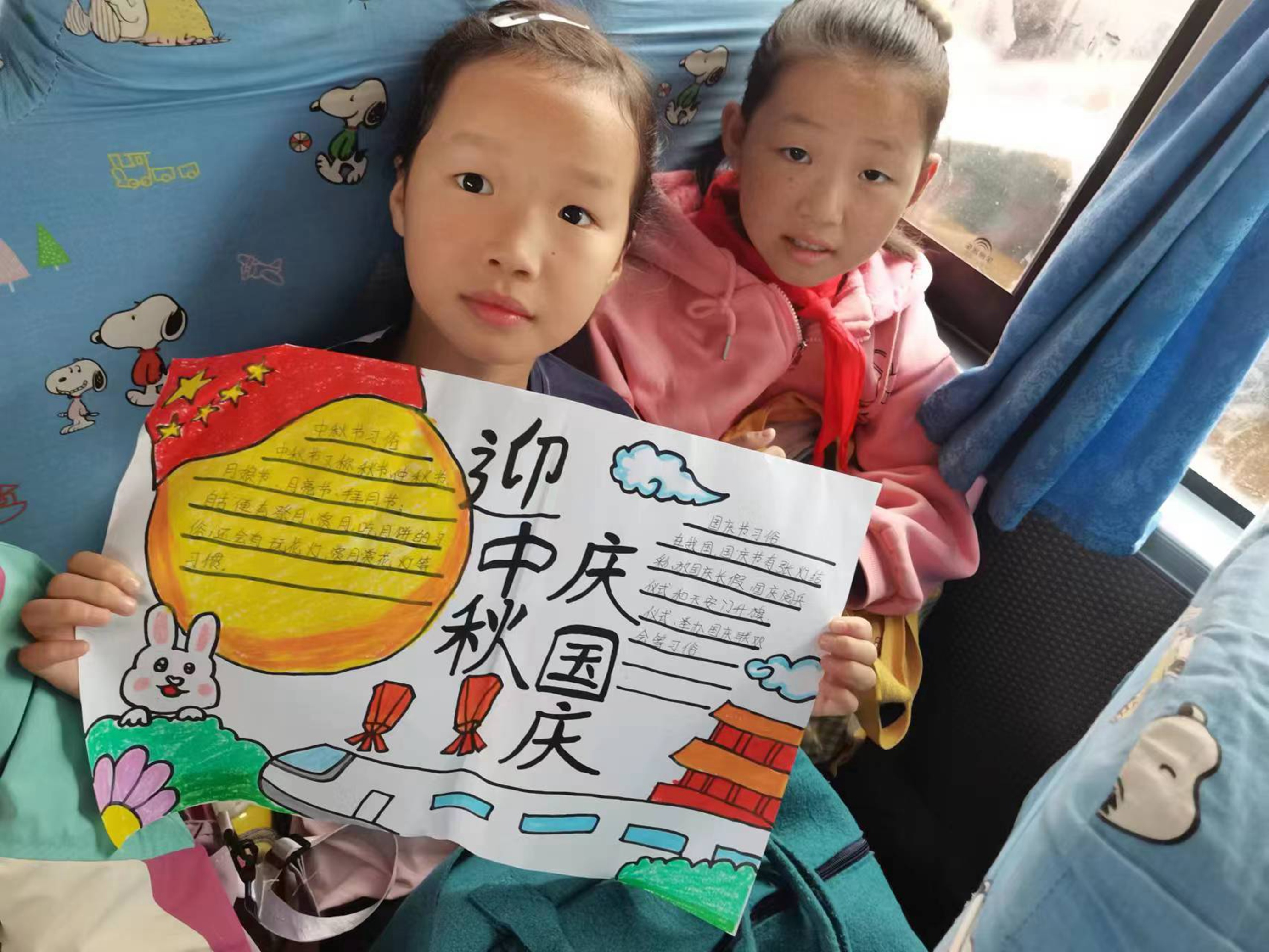 随后,乘车学生以手抄报的形式向祖国母亲庆生。孩子们发动脑筋用自己灵巧的双手创作出了一张张精美的手抄报,以此表达了对祖国母亲美好的祝愿。