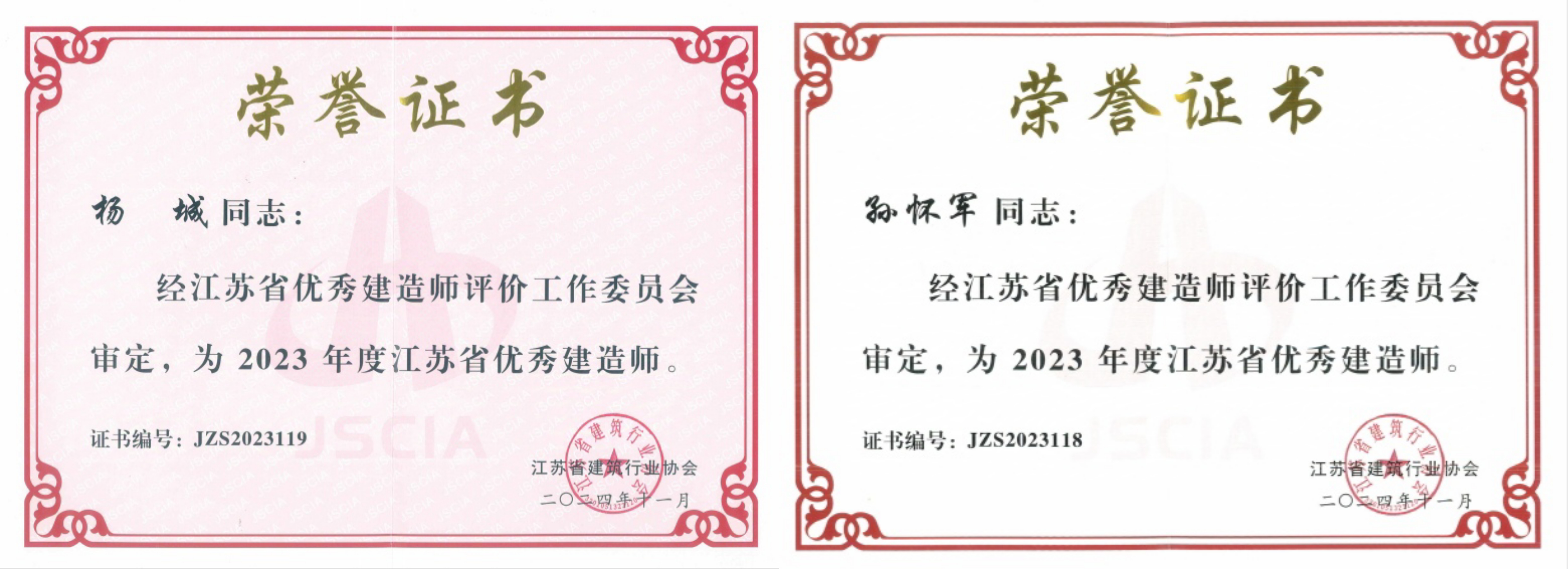 江苏海建公司两人荣获2023年度“江苏省优秀建造师”称号