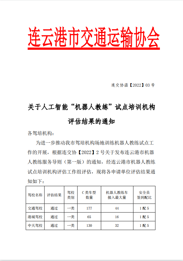 本次5所驾校被评为机器人教练试点培训试机构,是连云港市驾培行业全面推进教育信息化的一个小小缩影。近年来,驾培行业持续强化信息基础设施建设,推动大数据、人工智能等新一代信息技术与教育教学各个环节进行融合,智慧教育环境扩面提质,优质数字资源持续供给,不断探索“互联网+教育”新模式与新应用,引领和促进教育现代化。
