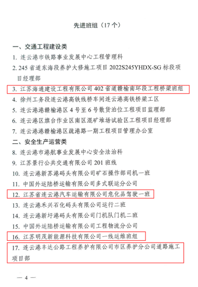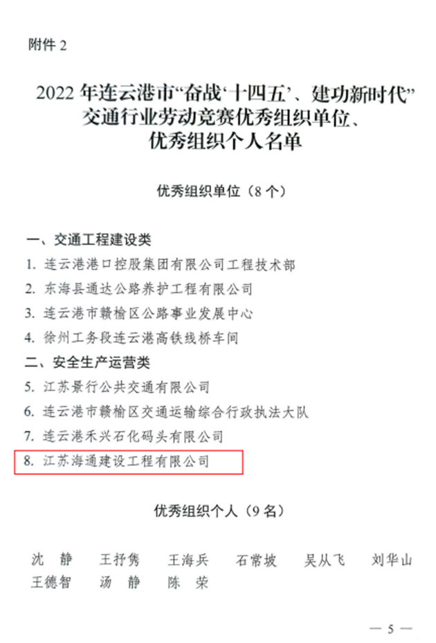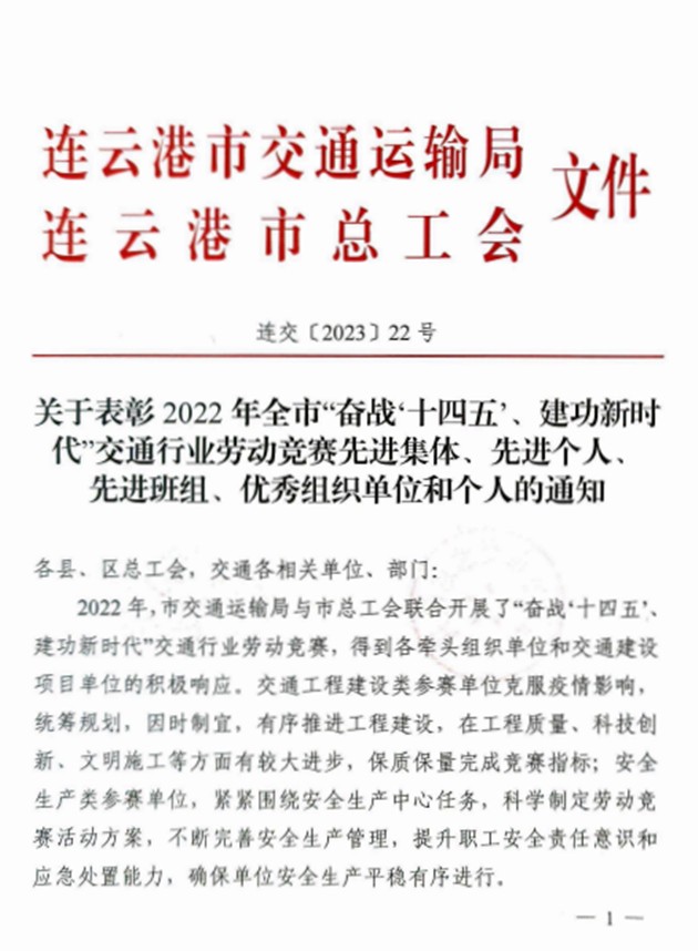 近日,从市总工会、市交通运输局传来喜讯,安博app最新版下载,安博(中国)权属公交安博app最新版下载,安博(中国)公交事业一部荣获2022年全市“奋战十四五、建功新时代”交通行业劳动竞赛先进集体,海建公司402省道赣榆南环段工程桥梁班组、汽车公司危化品驾驶一班、明茂新能源公司一线运维班组和丰达公司市区养护分公司道路施工项目部四个班组荣获先进班组,公交安博app最新版下载,安博(中国)周卓文被评为先进个人,海建公司被评为优秀组织单位。