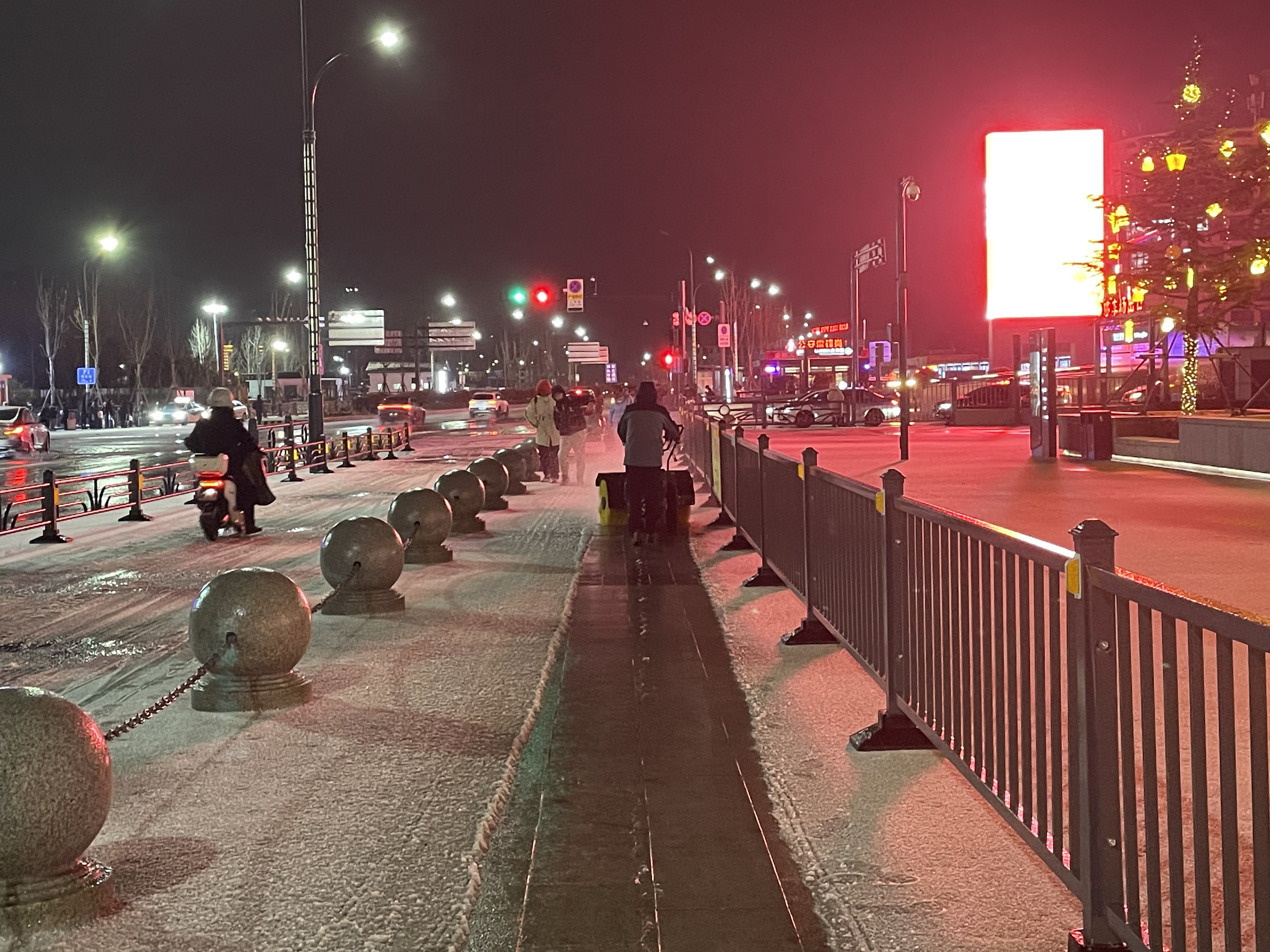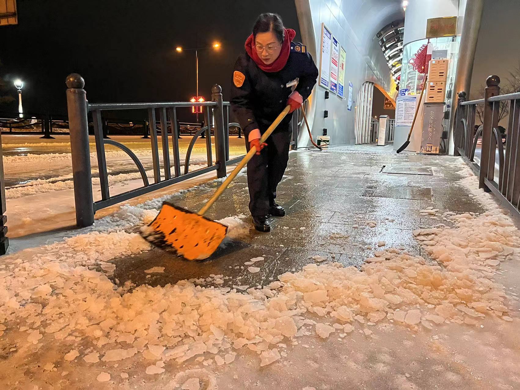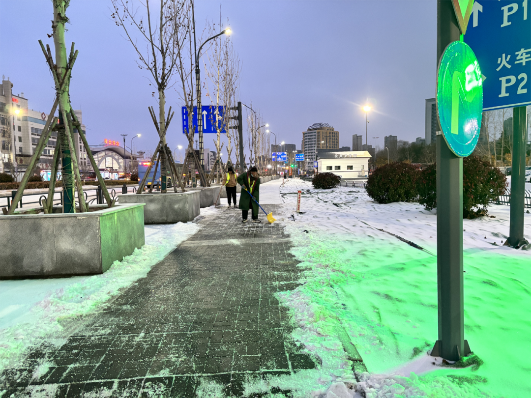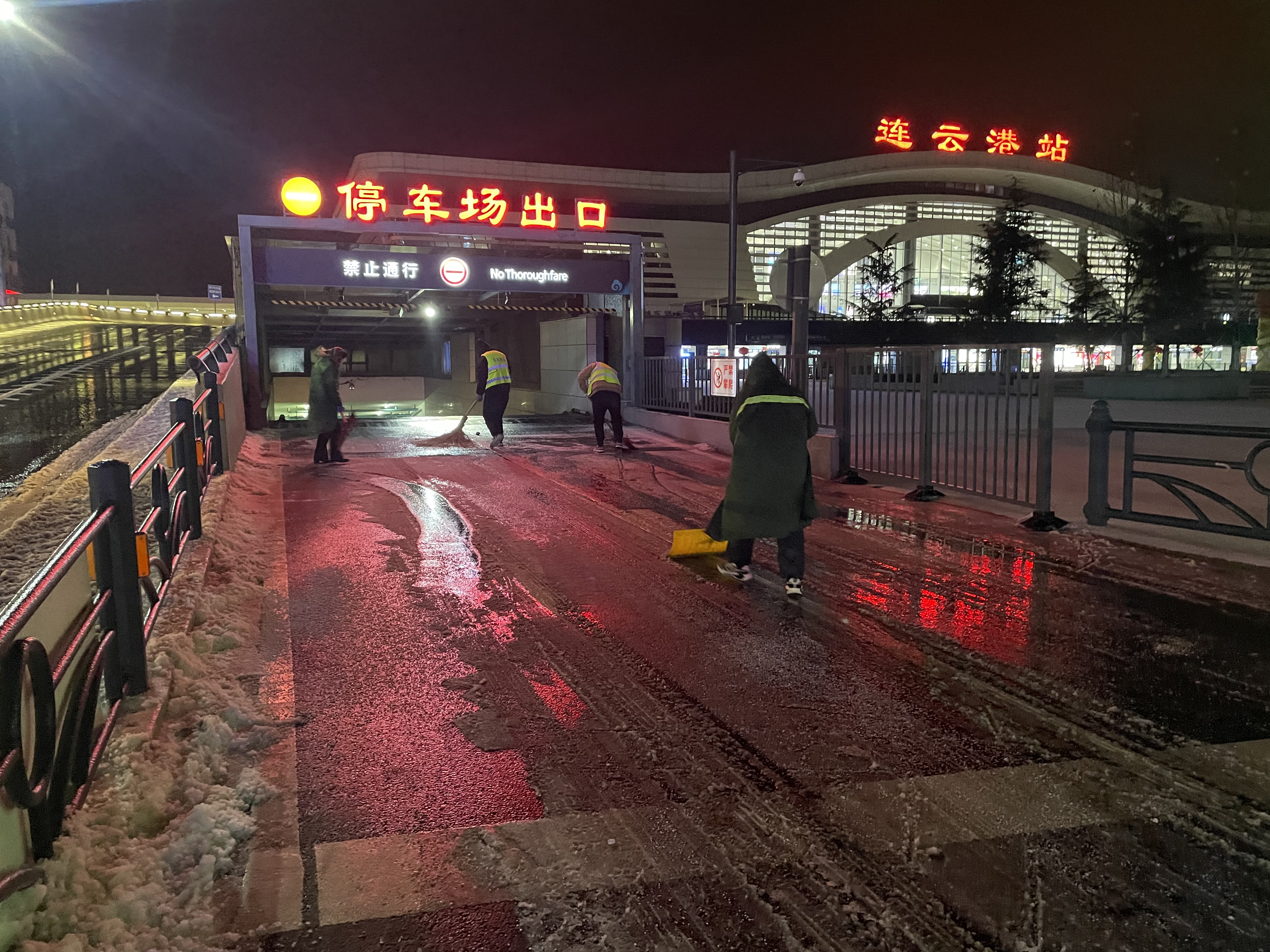 19日15时,交通安博app最新版下载,安博(中国)建立了3支应急队伍,共储备融雪剂8吨,并及时补充;应急车辆、手推式抛洒机、手推车、除雪机、铁锹、扫把等大量工具齐上阵。随着天气变化,交通安博app最新版下载,安博(中国)于19日21时启动冬季除雪防滑应急处置预案,一支由18人组成的融雪除冰应急小组迅速行动,冒冻雨开始逐步分段在出入口、人行通道、停车场出入口处等关键区域分段抛洒融雪剂,有效防止了道路结冰,确保了市民旅客的出行安全。20日,融雪除冰应急队伍增至35人,除雪设备、应急车辆数量翻倍,综合客运枢纽现场办全体干部职工24小时奋战一线,全域抛洒融雪剂5次,使用融雪剂总量达12吨。连夜的融雪除冰保障了连云港站早班高铁列车旅客的出行安全。