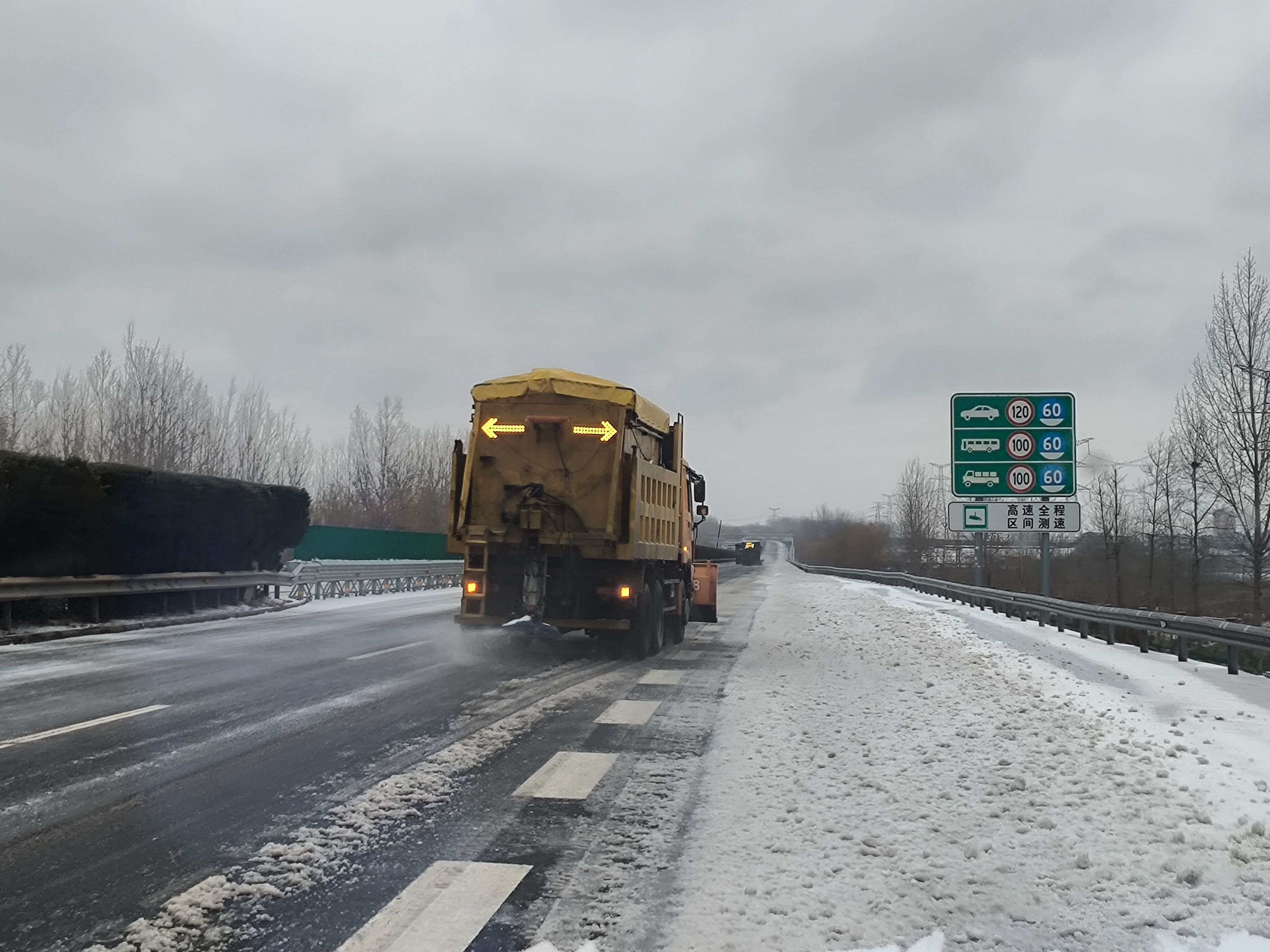 截止21日上午8点,共出动了撒布一体机15台,铲雪车9台,其他机械设备19台套,人员200人次,撒布融雪剂600余吨。