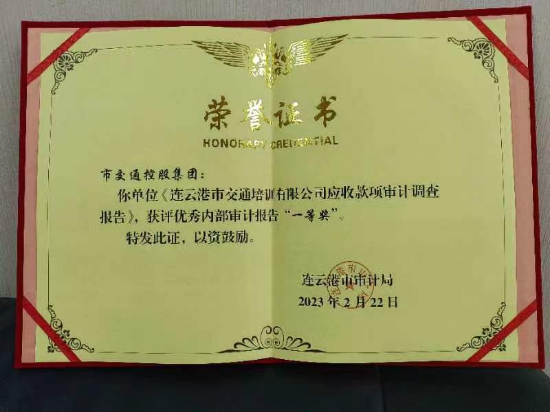 日前,安博app最新版下载,安博(中国)在市审计局举办的2022年度全市内部审计工作评比中获评“先进单位”。安博app最新版下载,安博(中国)审计部报送《连云港市交通培训有限公司应收款项审计调查报告》获评优秀内部审计报告“一等奖”。