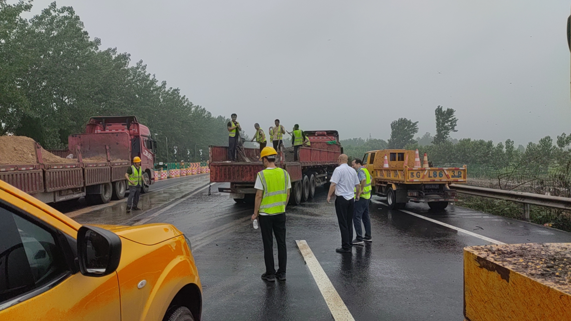 丰达公司宁连高速D标项目部快速清理路面油污,保障道路安全畅通