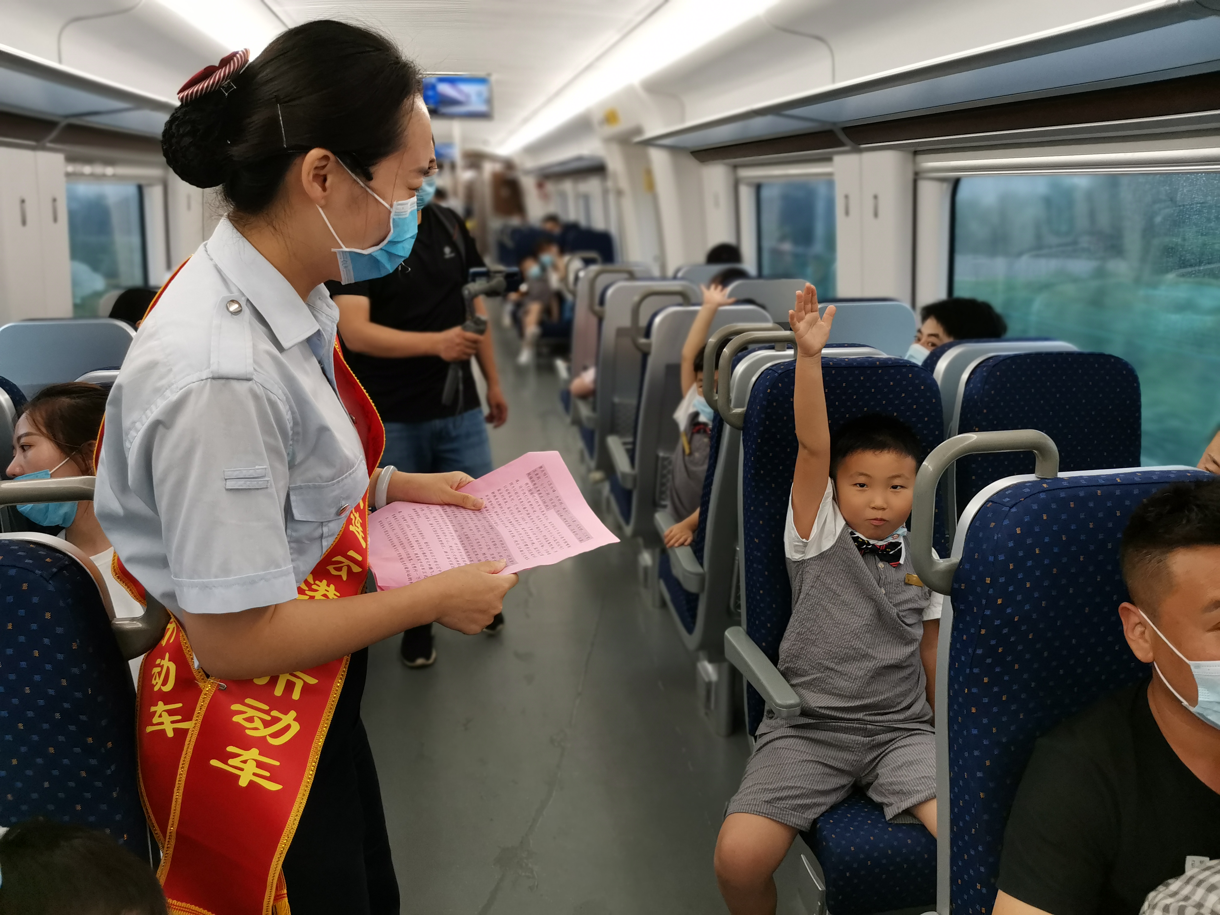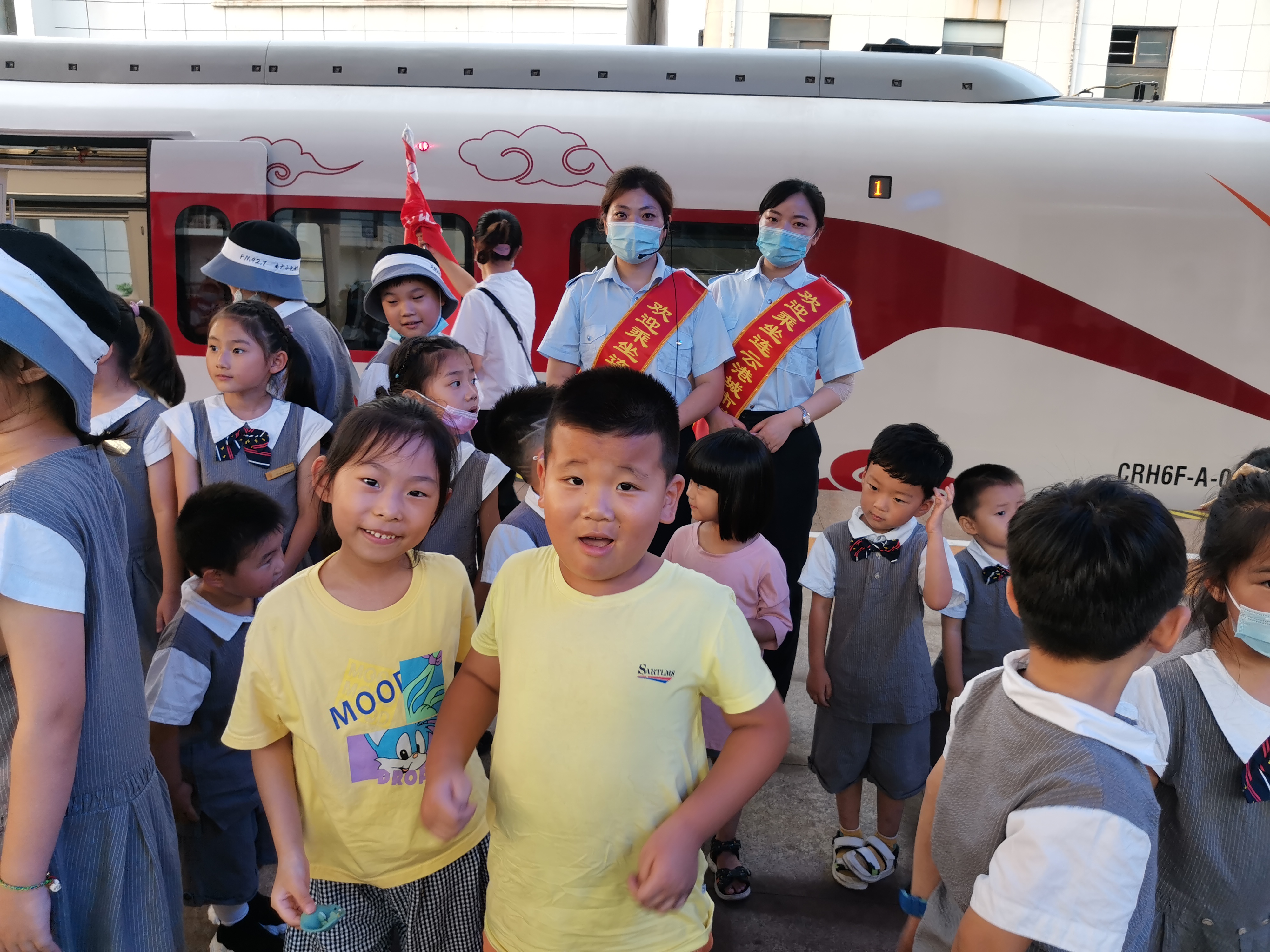 近日,来自连云港市的280余名“交广”小记者开展以“体验动车舒适,感受家乡变化”为主题的城市动车体验活动。按照约定时间,小记者们在城市动车连云港站集合,与家长们一起踏上了开往连云方向的城市动车。当孩子们看见了绘有祥云图案的城市动车时都非常兴奋,家长们也纷纷拿出手机和孩子们拍照留念。