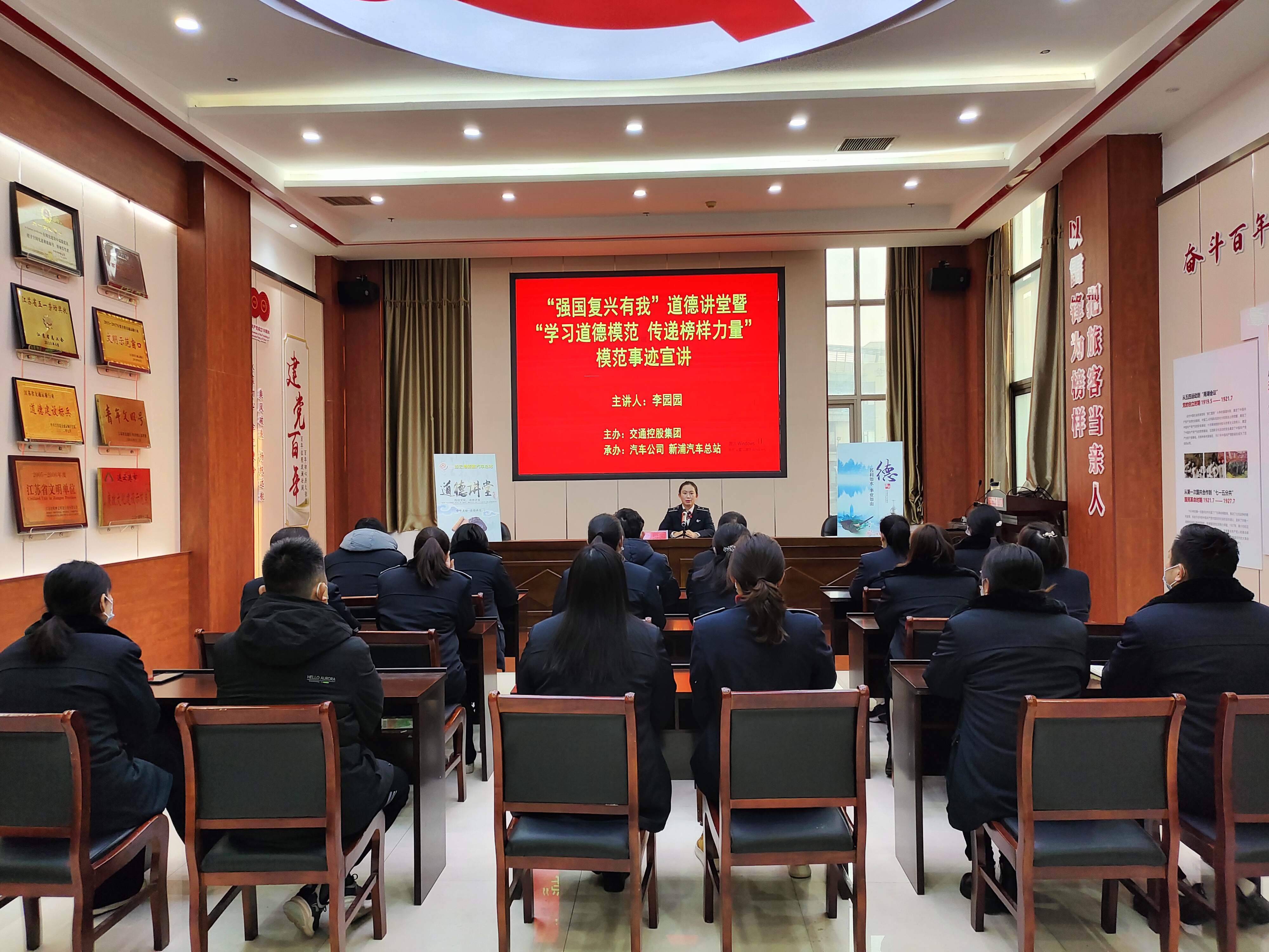 为认真落实“强国复兴有我”道德讲堂暨“学习道德模范 传递榜样力量”主题宣传教育活动,12月7日下午,由交通控股安博app最新版下载,安博(中国)主办,汽车公司、新浦汽车总站承办的道德模范进讲堂活动在新浦汽车总站二楼党员会议室开讲。活动邀请市五一劳动奖章获得者、第六代“雷锋车”手李园园宣讲,公司领导班子及干部职工代表30余人参加活动。